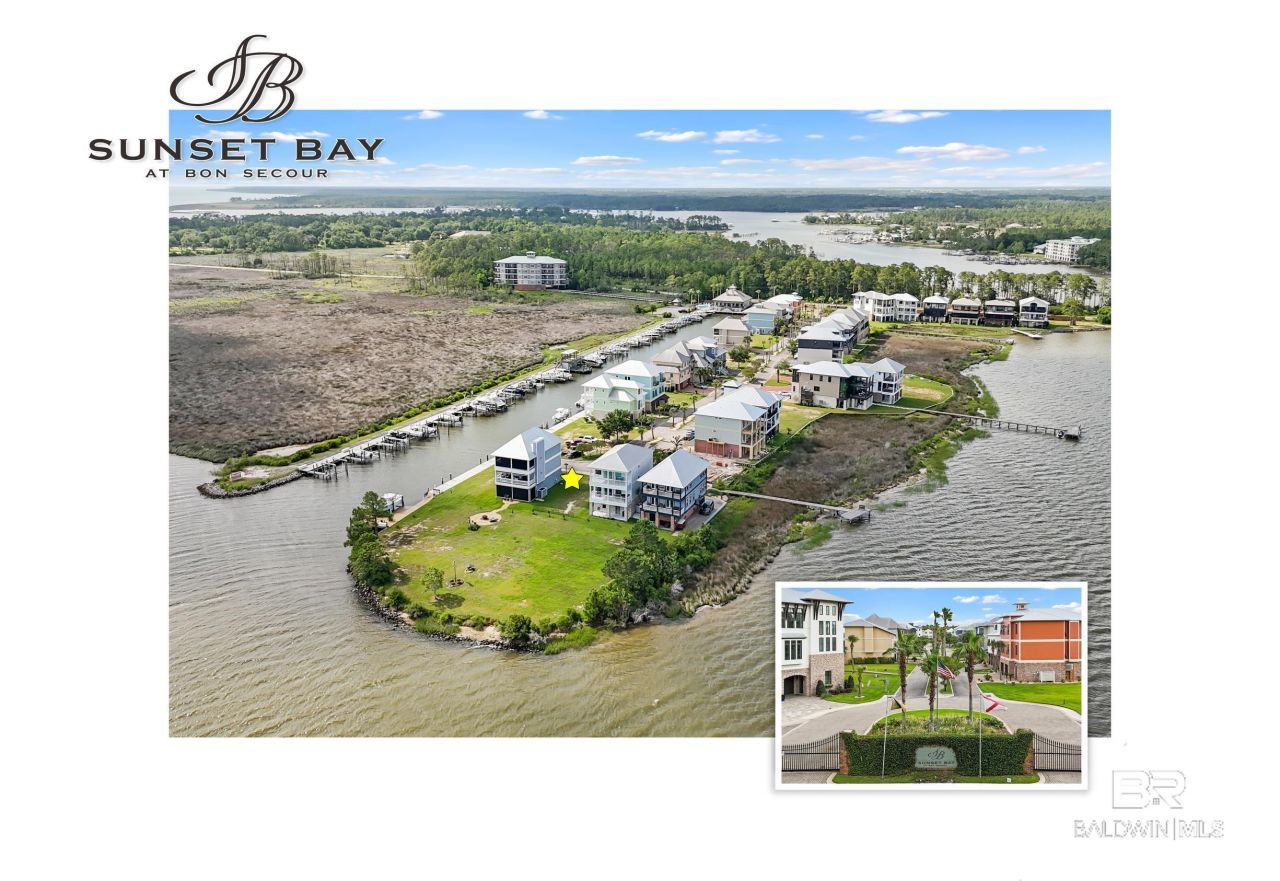 BOATERS DREAM! Nestled beside approximately 50 acres of protected conservation land, Sunset Bay at Bon Secour offers a peaceful retreat from the bustle of city life. This exceptional homesite is located at the end of a quiet street and boasts sweeping, unobstructed water views. Included with the property is an assigned boat slip #32 measuring roughly 40 feet by 15 feet. The slip features a lift, as well as water and power hookups, and is ideally situated on the Marina's western side near the clubhouse for added convenience. Sunset Bay's community amenities enhance its appeal, featuring a gated entrance, outdoor pool and hot tub, scenic observation gazebo, clubhouse, fitness center, and a library. Whether you're seeking a permanent residence or a serene getaway, this unique parcel offers the perfect blend of natural beauty and modern comforts. Buyer to verify all information during due diligence.