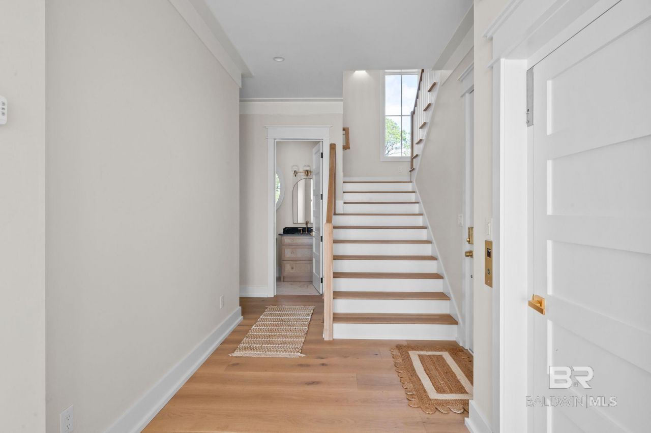 Gold Fortified bayfront living built for comfort and longevity. Designed by Bob Chatham and completed in 2025, this elevated coastal home offers elevator access to all floors, sweeping Mobile Bay views, and an open layout centered around a chef's kitchen with premium finishes.The primary suite provides a private retreat with balcony access and spa-style bath, while white oak flooring and impact-rated Marvin windows and doors deliver lasting quality throughout. A professionally built pier and boathouse complete this move-in ready waterfront lifestyle. Buyer to verify all information during due diligence.