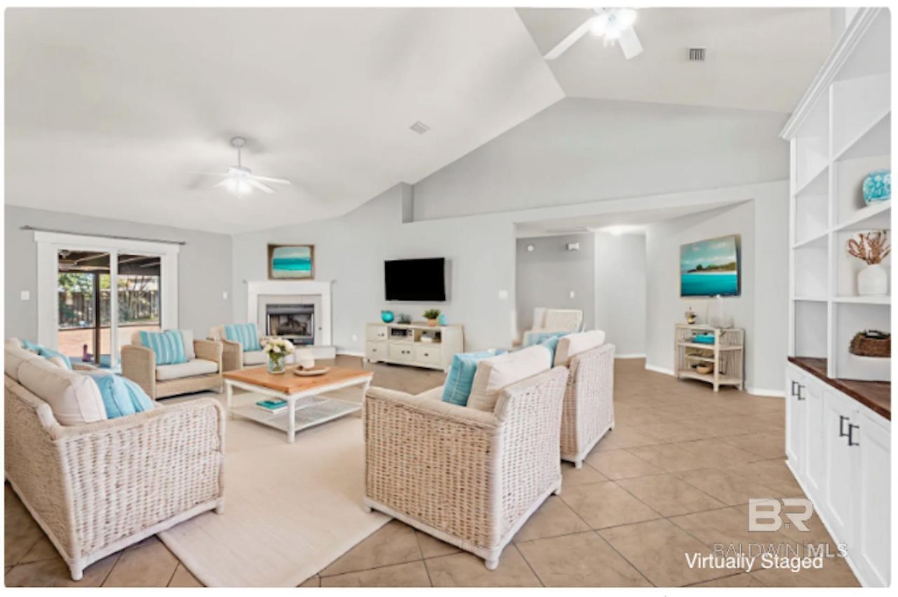 Step into a home that feels welcoming & effortlessly livable. Mature oak trees frame the front entry, setting the tone for a residence filled with warmth, character, & features you simply won't find in new construction. Vaulted ceilings, a gas fireplace, & custom built bookcases create a space that invites you to slow down & stay awhile. This spacious 4 BR/2.5 bath BRICK home features a FORTIFIED ROOF(2021), an open floor plan designed for everyday comfort & meaningful gatherings. Two sets of double sliding glass doors blur the line between indoors & out, leading to an oversized screened porch overlooking a garden-like backyard shaded by oaks. Enjoy morning coffee surrounded by lemon, blueberry, & avocado plants. Electric is already pulled for a future she shed or creative outdoor retreat. The kitchen is made for entertaining with abundant granite countertops, large island, & a coffee or buffet bar that keeps everyone connected. Easy care flooring flows throughout. NO CARPET. Cortex in bedrooms & office/dining space, tile in the entry & living room, & vinyl in the kitchen. The primary suite feels like a private escape with a tray ceiling, jetted tub, separate shower, & an oversized closet with a window that fills the space with natural light. 3 spacious secondary bedrooms, two with walk in closets, plus abundant storage including three linen closets, an oversized walk in pantry, & a garage with EV charger & built in shelving offer room for everything. The flexible layout provides generous space & privacy, ideal for a variety of living arrangements. With a side entry garage, space to store a BOAT or RV, & a location in the much loved Plantation at Magnolia River, known for it's tree lined streets & larger yards, this home offers a true sense of neighborhood & convenience. Just minutes to iconic Jessie's Rest., Boat Launches, OWA, Old Town Fairhope & Gulf Shores Beaches. Buyer to verify all in Buyer to verify all information during due diligence.