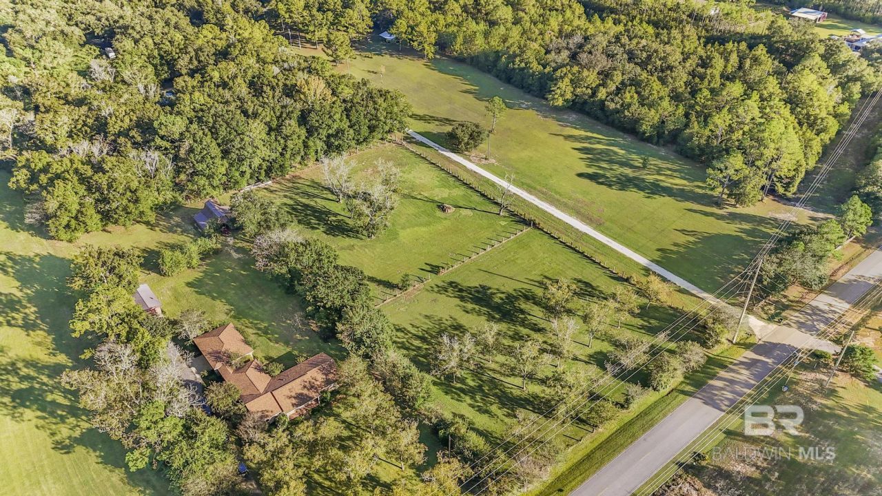 12352 Mary Ann Beach Rd, Fairhope is a Charming Ranch Retreat on 3.8 acres- about 1 mile from Mobile Bay! Includes PPIN 36741 and 625530. Discover peaceful country living just minutes from stunning sunsets and about 15 min to grocery shopping and schools. This 3 bedroom, 2 bath ranch-style home offers 2091 sq ft of living space surrounded by mature producing pecan, fig and pear trees, blueberry bushes and muscadine vines. Off the back of the home, there is a heat and cooled sunroom that overlooks a covered patio/breezeway, where you will find a built in bricked smoker. Connected to the breezeway is the oversized 2 car garage featuring the 3rd full bathroom, laundry hook up and utility sink. Step outside to enjoy almost 4 acres of beautiful land to use as a hobby farm, functioning farm or homestead.. ready for your animals! 30x34 Barn with hay loft, 3 lockable stalls, a feed room, 2 fenced pastures, chicken coop with nesting boxes and feed house. 16x20 Shop that has water and power as well as 50 AMP RV plug and 100 AMP service for a welding machine. Whether you are seeking a private homestead, small hobby farm or peaceful coastal get away, this property offers the perfect balance of comfort, functionality, and natural beauty-all close to Fairhope's charming downtown and minutes from Mobile Bay. Enjoy country living close to the coast- schedule your private tour today! Glenn Acres sign in Living Room and Fire Hose American Flag in Sunroom, not to convey. Buyer to verify all information during due diligence.