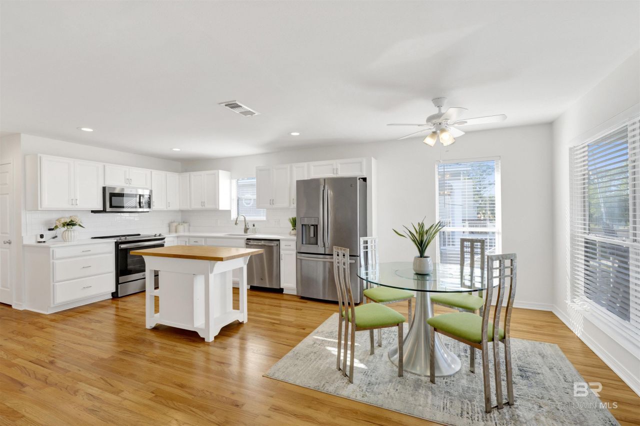 Welcome home to your peaceful bay retreat on Dauphin Island where everyday living feels like a getaway. Overlooking the tranquil waters of Aloe Bay, this beautifully updated home offers sweeping views of the bird sanctuary, the Dauphin Island Bridge, and unforgettable sunsets that paint the sky each evening. With Pryor Park next door, you enjoy rare added privacy and extra green space, plus a full backyard that's perfect for kids, pets, and spending time outdoors. Whether you're searching for a low-maintenance full-time residence or a carefree second home, this island haven checks every box. Step inside to an inviting open-concept layout filled with natural light, featuring solid oak hardwood flooring throughout and elevated, easy-care finishes. The kitchen, dining, and living areas all capture water views from every angle, and the full-length front balcony becomes your favorite place to unwind, entertain, or simply breathe in the island breeze. This home has been thoughtfully modernized inside and out with Hardie Plank concrete siding, a fortified metal roof (2022), updated cabinetry, stainless steel appliances, Quartz countertops, remodeled baths, and more. The oversized primary suite with lots of natural light, offers a private sanctuary with a large walk-in closet and a beautifully updated en-suite bath. Guests will feel right at home with two generously sized bedrooms, each with its own bathroom...no sharing required. One features a standup shower and the other a tub/shower combo for the perfect blend of convenience and comfort. Downstairs, enjoy the rare bonus of a heated & cooled workshop, abundant storage, covered access to the main level, plus a stubbed-out option for an additional bathroom if desired. There is also ample parking for a boat, under the house or in the back, making weekend adventures a breeze. With high ceilings, effortless flow, and generous indoor and outdoor living spaces, this home is the perfect place to settle in and savor island life.