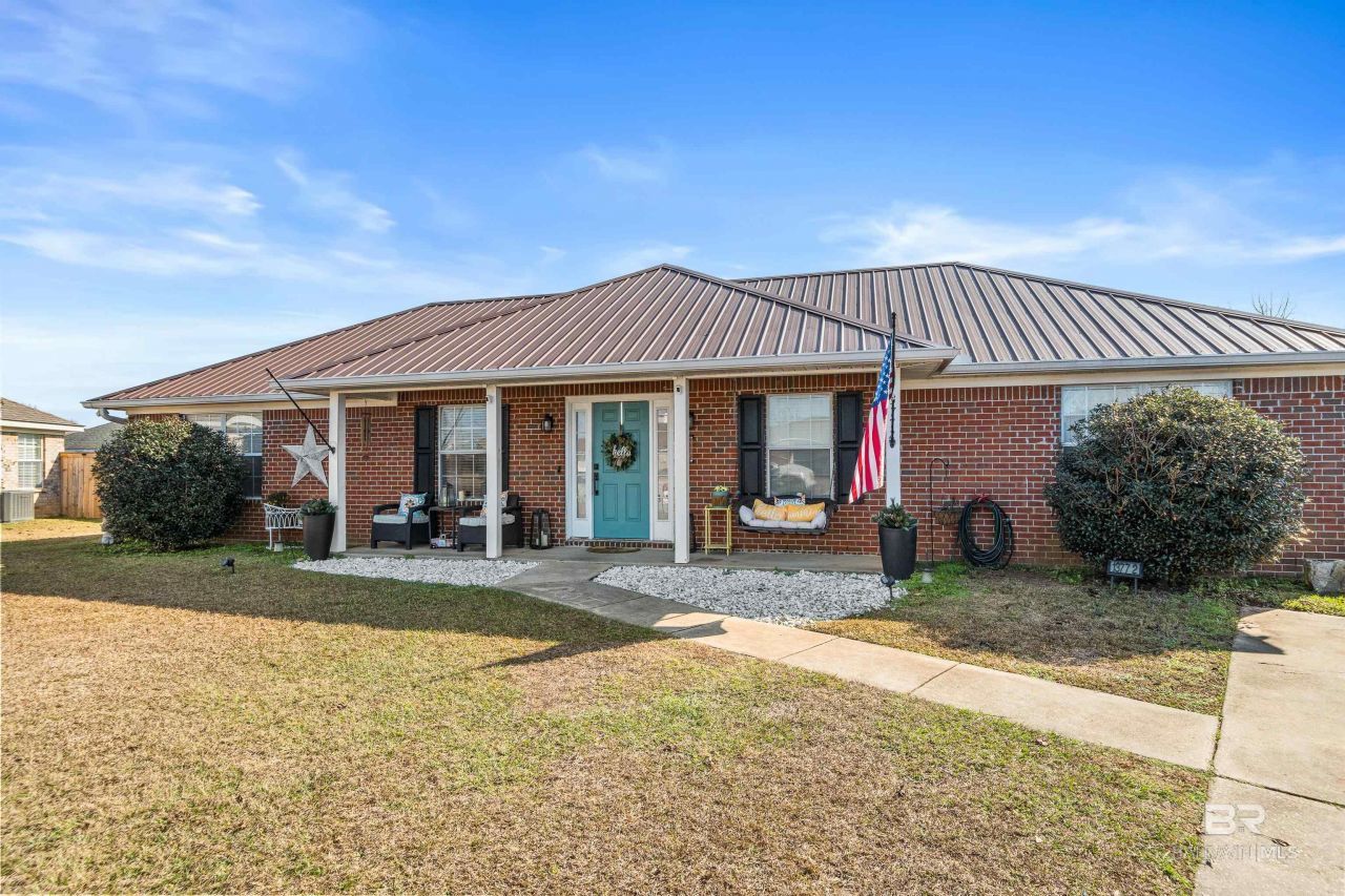 Welcome to Sweet Gum Village, located just five miles from downtown Foley with easy access to Tanger Outlets, OWA, and the Coastal Alabama Farmers and Fishermen's Market. Enjoy coastal Alabama living with historic Magnolia Springs and Weeks Bay less than ten minutes away, offering boating, dining, and outdoor recreation. Tucked away at the end of a quiet cul-de-sac, this brick home offers 4 bedrooms, 2 bathrooms, approximately 1,500 square feet of living space, and a backyard designed for entertaining and everyday enjoyment, featuring an outdoor kitchen added in 2025 and an above-ground pool. Recent updates and improvements include a new metal roof and HVAC installed in 2020, a water heater replaced in 2018, and a covered deck added in 2024. In 2025, additional updates included new blown-in insulation, a new pool deck, and updated fencing with a 14-foot gate on the south side (excluding the back fence). Front and back landscaping, along with a kids' play deck in the backyard, were completed about one year ago. Inside, the home offers a split floor plan with tile and vinyl flooring throughout. The living room opens to the dining area featuring a custom light fixture and flows into the kitchen, which offers ample counter and cabinet space along with a window overlooking the backyard. The primary suite includes an ensuite bath with a walk-in closet, single vanity, and tub/shower combination, while three additional bedrooms and a full bathroom are located on the opposite end of the home. A laundry room leads directly to the large covered back deck overlooking the fully fenced backyard. A storage shed with power completes this property. Buyer to verify all information during due diligence.