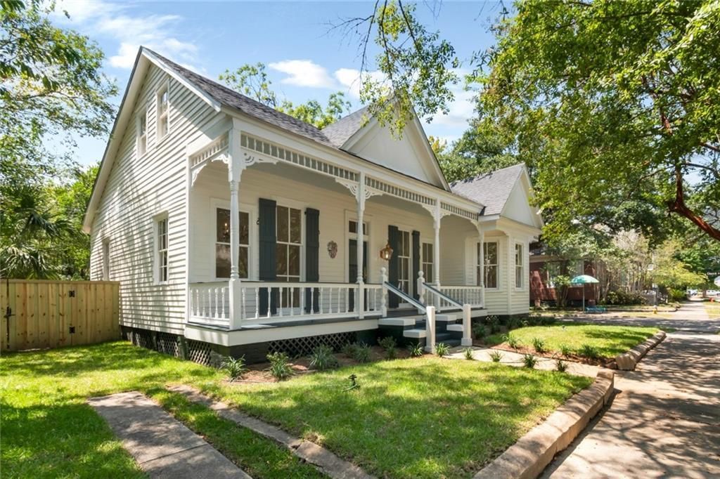 Totally renovated top to bottom! With a brand new price! Welcome to Church Street East Historic District. A unique Downtown neighborhood centered around restaurants, theaters, arts, breweries, festivals & Mardi Gras Parades. Home is in close proximity to British Park, Spanish & Government Plazas, restaurants and nightlife. Home sits a half block off the Mardi Gras parade routes and The MOT's club house. A circa 1850s creole cottage was reimagined into a Folk Victorian in the late 1800s. Property is rich w/ details, including turned posts embellished w/ intricate spoon-carvings, flanked by arched brackets that echo & accentuate the tall shuttered jib windows. Historical attributes include gleaming hardwood floors, original millwork, chandeliers & antique doors. Main floor features 12' ceilings, a foyer w/ coat closet, L shaped living & dining areas with wood burning fireplaces, a large formal dining that could be used as a family or multi purpose room, conveniently located off the eat in kitchen. The kitchen features new cabinets, quartz countertops, under-cabinet lighting, farmhouse sink, center island made from antique French pine, custom range vent hood and window seat with storage. Main floor also features a lovely primary suite w/ brick fireplace, 2 walk-in closets and private bath with custom vessel sink. The back hall has a half bath and staircase that leads to 2 bedrooms and a full bath which are perfectly situated for visiting guests. The backyard features a New Orleans style brick courtyard with antique fountain and raised deck. Renovated from top to bottom; including new plumbing, HVAC, electrical, restored windows that open, roof in February of 2024, all baths, kitchen, deck and landscaping. T4 Zoning allows for a live & work scenario. DAUPHIN ISLAND BEACHES (45 min), FLORIDA BEACHES (1-2 hours) NEW ORLEANS (2+ hours) The opportunity to purchase back lot as a package with the purchase of the home. The opportunity to purchase back lot as a package with the purchase of the home.***Buyer responsible for verifying all measurements and relevant details. 2 blocks away from the new $300 M Live Nation Civic Center.