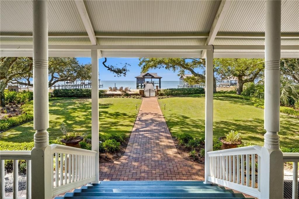 Beautiful Historic home located on the boardwalk in Point Clear on Mobile Bay. The timeless charm of this historic home is accentuated by its meticulous reconstruction in 2002, preserving the essence of its classic design while incorporating modern comforts. The six bedrooms and six baths, coupled with two half baths, span an impressive 8,000 square feet within the main house, showcasing a commitment to both elegance and space.The inclusion of a guest cottage, complete with two bedrooms, a well-appointed kitchen, and a comfortable living room, offers a private retreat. The additional guest apartment above the garage, featuring a kitchenette and full bath, enhances the property's versatility, accommodating various living arrangements.Inside, the heart pine flooring creates a warm and inviting atmosphere, complemented by custom crown molding that adds a touch of sophistication. The sandy white beach and boardwalk provide direct access to the beauty of the surroundings, while the custom wharf with a boat lift, ice maker, and storage facilities caters to water enthusiasts.The expansive panoramic view of Mobile Bay and Point Clear from the property adds a breathtaking backdrop to everyday life. Situated just five doors south of the Grand Hotel, the residence enjoys a prime location within the Point Clear Historic District and the National Register of Historic Places.Beyond its architectural and scenic delights, the home comes fully furnished with bespoke furniture and drapes, ensuring that every corner is adorned with luxury and style. This meticulously crafted family compound is not just a dwelling; it's a testament to the seamless fusion of history, modernity, and comfort in one of Point Clear's most coveted locations. Buyer to verify all information during due diligence.
