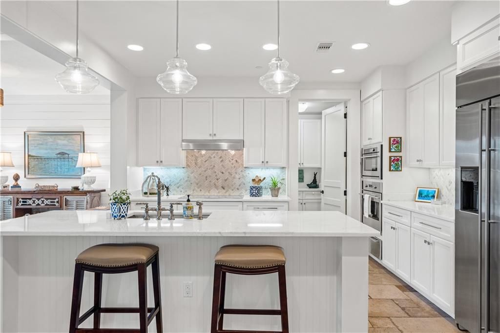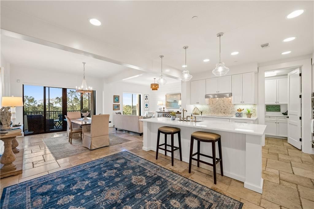 This stunning and beautifully updated 2-bedroom, 2-bath residence features designer touches throughout. The kitchen showcases painted white cabinetry, granite countertops, stylish backsplash, updated lighting, stainless steel appliances, wine cooler, and bar seating, all flowing seamlessly into the dining and living areas-perfect for entertaining. The living room is accented by a a shiplap wall and a picture window providing unlimited views. The primary suite provides a relaxing retreat with an ensuite bath complete with separate tub and shower, double vanities, and a walk-in closet. Enjoy peaceful evenings from your screened private balcony, or take advantage of the rooftop terrace boasting spectacular sunset views. Community amenities also include a fire pit, outdoor kitchen, grill, and bathroom. Residents can also enjoy the scenic walking trail around the lake or stroll to the nearby restaurants for dining. Membership at Lakewood Country Club is optional, offering access to pools, golf, tennis, dining, spa services, and picturesque grounds Buyer to verify all information during due diligence.