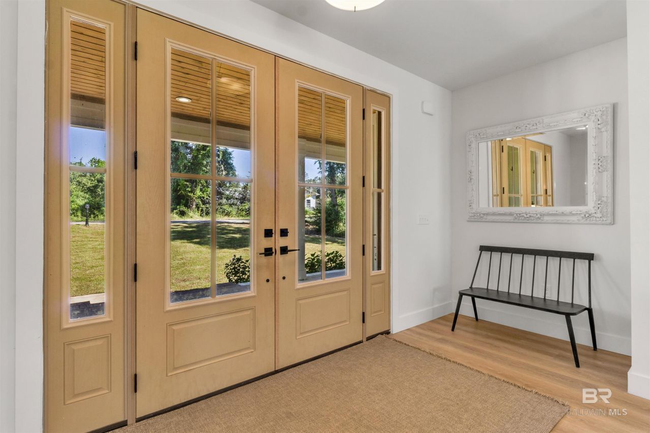 This stunning 6BR/3.5BA Gold Fortified custom home, in Gulf Shores, offers high-end finishes, open floor plan, NO HOA, and direct water access Brights Creek. In the kitchen you will find butcher block counter tops, gas range, pot filler, a Café dual fuel double oven, Bosch 800 dishwasher, wet bar, and a walk-through pantry. The first floor primary bedroom and bathroom features a large walk in closet, double vanity, hidden storage, a large walk in shower and a separate tub. Additional features include a gas tankless water heater, first floor, laundry room, mud room with sink, and office. Upstairs you will find 4 bedrooms, one full bath with double vanity, laundry chute, hidden closet, laundry closet equipped for stackable washer and dryer, unfinished bonus room over the garage, and fully insulated floors for sound. Outdoors, a classic Southern front porch with two swings, and a spacious rear porch with TV and fireplace perfect for entertainment and gatherings. Contact your favorite agent to view this beautiful home. Buyer to verify all information during due diligence.