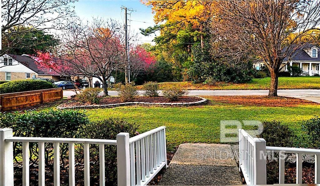 This charming 3-bdrm, 3-bath brick home is just a short distance from downtown Fairhope and the bay! It sits on a double lot and features a spacious backyard w/gazebo. The property includes a 2nd full suite with an office. From the lovely covered front porch, step into the formal living room, which boasts parquet wood floors, crown molding, built-in bookshelves and a lighted niche' for displaying your most prized family heirloom...then into the formal dining room, highlighted by a stunning chandelier, split-brick floors, decorative chair rail and an open layout to the kitchen. The kitchen is equipped with stainless steel appliances(which remain), granite countertops, ample cabinet space, and a generous pantry. Behind the kitchen & dining area, you'll find a den with high ceilings that overlooks a courtyard and a pergola. The home follows a split bedroom layout, with the master suite accessible from the garage, a bay window, a master bathroom with a garden tub, and a walk-in closet. On the opposite side, there's a 2nd bedroom with a unique faux-painted design on the walls, and a charming built-in bench seat in the bay window. The hall bath includes a shower, a unique octagon-shaped window and a lovely faux-painted finish on the walls. At the back of the house, there's another suite comprising a bedroom, a full office with built-ins, and a full bath with a tub/shower combo. The home also includes a one-car garage and a large laundry room. From the kitchen, you can access a screened-in back porch that overlooks a courtyard complete with a large birdbath, and an inviting arbor leading to a second lot featuring a gazebo and a private nature trail, all in your own backyard! This home has a charm about it that needs to be experienced! So call your favorite agent for a showing today! *There are several virtual-staged photos in this listing, to give buyers an idea of what it will look like with furniture. (The home is vacant of furniture, with the exception of the barstools)