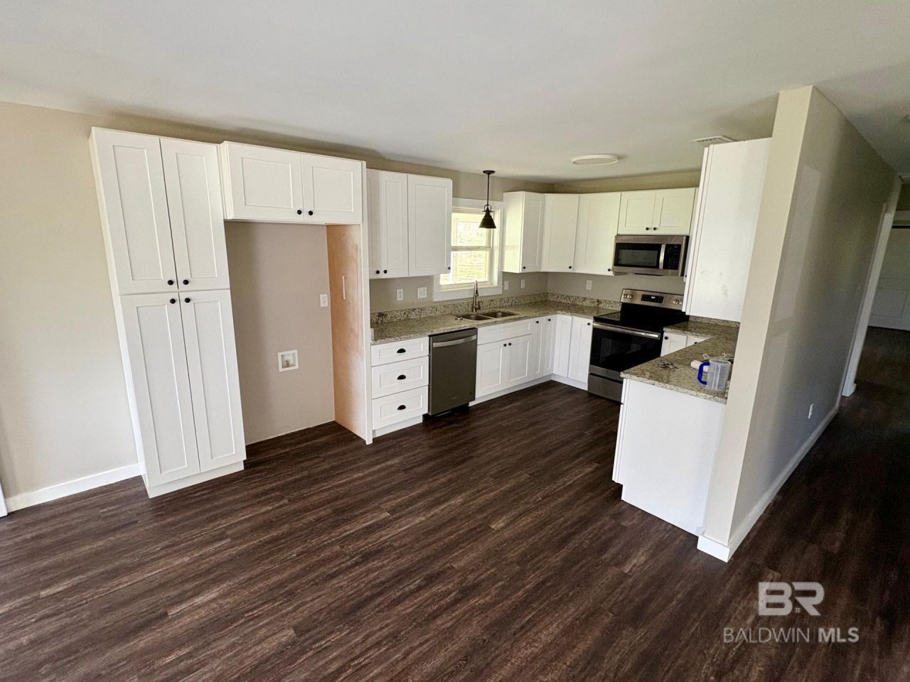 Extensively renovated 3/2 on nearly an acre off of Hand Avenue in Bay Minette. Home offers an architectural shingled roof, NEW windows, cabinetry, flooring, light switches/plugs, ceiling fans and stainless appliance package. Granite counter tops, sliding barn doors to utility room and primary bathroom. Fresh interior and exterior paint. This one is move in ready! Buyer to verify all information during due diligence.