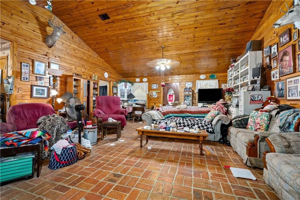 Welcome to your own southern slice of paradise. This is a rare chance to own more than 66+acres of rolling countryside with a private gated entrance, a peaceful home built for comfort and country living, and a beautiful 4-acre lake stocked with bream, trout, and catfish. Step inside and you'll find a home that blends rustic charm with everyday comfort. The open living area greets you with warm wood ceilings, rich brick floors, and the inviting glow of a stone fireplace that makes the space instantly feel like home. The spacious kitchen has plenty of cabinets, natural light, and room to gather, cook, and create memories that will last for years. Down the hall are large bedrooms designed for rest and relaxation, while the owner's suite provides a quiet retreat after a long day outdoors. Every room carries the warmth and detail of true country craftsmanship. Outside, nature takes the spotlight. Trails weave through the property, perfect for ATVs, horseback riding, or peaceful walks among the pines. Deer feeders are already in place, attracting wildlife throughout the year, making this property perfect for hunting or simply enjoying the outdoors. Start your mornings on the large covered front porch overlooking the wide open yard, or relax in the evening on the back porch as the sun sets over your private lake. The property also includes a spacious garage workshop with water and electricity, plus a carport for vehicles and equipment. It's well equipped for work, storage, or hobbies. With a two-year-old roof, a brand-new HVAC system, and a whole-home generator, this home is ready for years of easy, worry-free living. Whether you want a private homestead, a hunting retreat, a family getaway, or an investment opportunity, this unique property offers the space, peace, and possibilities you've been dreaming of.