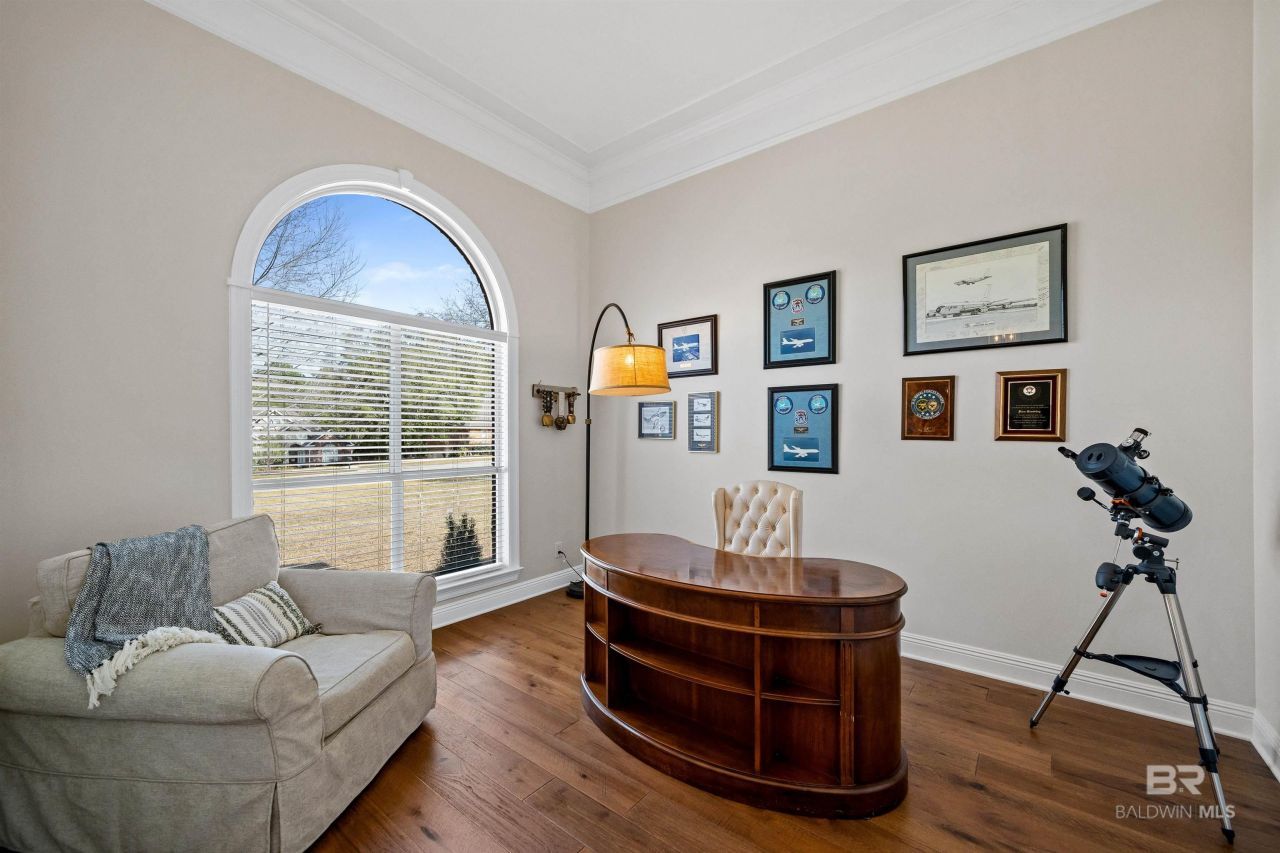 Welcome to highly sought after Timbercreek! This well-maintained and professionally renovated 4-bedroom, 3-bath home offers a functional layout and golf course views across 3 fairways. Includes a Fortified roof. A dedicated office and formal dining room welcome you at the entry, leading into a spacious living area featuring a gas fireplace and custom built-in bookcases. Both the living room and kitchen overlook the backyard and golf course, creating a bright and inviting living space. The kitchen is beautifully updated with painted cabinetry, quartz countertops, kitchen pantry, and stainless-steel appliances. The generous primary suite has an ensuite bath offering a double vanity with quartz counters, water closet, separate tub / shower, and a large walk-in closet. Three additional bedrooms are also located on the main level. One features an ensuite bath, while the remaining bedrooms share a hall bath. A versatile flex space above the garage offers endless possibilities ? perfect for a media room, playroom, home gym, or additional storage. Community amenities include two swimming pools, tennis and pickleball courts, a fitness center, clubhouse and secured boat & RV storage facilities. Conveniently located near shopping, dining, and everyday conveniences with easy access to I-10, Pensacola, FL, Mobile, Biloxi and central to all of Baldwin County. Buyer to verify all information during due diligence.