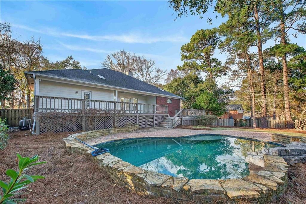 Classic features in this 4/3 with saltwater Gunite pool, and 3-car garage, all within walking distance of shopping, school, parks. AND there's a whole-house generator! This plan offers adaptable space to fit your changing needs. Entering through the large foyer, you'll find a spacious formal dining area (could be another living area or playroom). Central to this home is the greatroom with gas-log fireplace, trey ceiling and built-in shelving. Kitchen has granite counters, island with cooktop, built-in wall oven and microwave, pantry and eat-in area. Note the engineered flooring, split brick, tile and carpeted flooring, plus plantation shutters. Beyond the kitchen is a large laundry room and the 4th bedroom with nearby bath. On the opposite side, there are three bedrooms. The primary bedroom is oversized, adjacent bath has his-and-her vanities and closets, and jet tub. At the rear of the house off the greatroom is a bonus/flex space suitable for an office or play area. Door in this area leads to 3-car garage (stair lift included). Garage has nice storage. Back porch both opened and covered spans the back of the house and overlooks the salt-water pool with brick decking. Imagine lazy afternoons swimming and soaking up the sun. Yard is fenced. Per seller: Termite bond with Arrow. HOA $360 annually. HVAC is SEER 14. Whether you're headed to Mobile, Pensacola or points North and South, this location is a commuter's dream. Buyer to verify all information during due diligence.