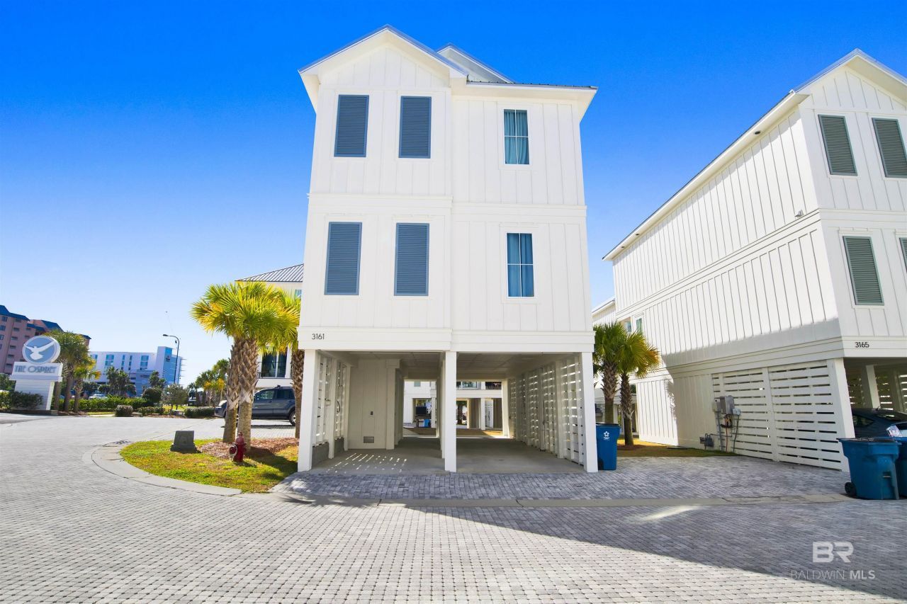 Located in The Osprey a waterfront community on Cotton Bayou in the heart of Orange Beach. The neighborhood offers waterfront living with marina access, covered boat slips assigned to each home. This home comes with boat slip #32. Amenities include zero entry pool and brick paved streets. Constructed with fortified Gold standards, quartz countertops, spray foam insulation and wood ceilings/shiplap walls in the main living areas. 3161 Egret Run was just recently furnished with all new furniture and decor. Bunk room located on main level with half bath. Covered parking and storage. Located near restaurants and public beach access. Excellent short term rental potential due to location and amenities. Golf Cart friendly. Buyer to verify all information during due diligence.