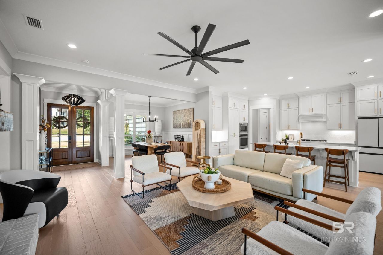 Discover comfort, quality, and a peaceful setting in this Truland-built, Gold Fortified home overlooking Sibley Creek. The Gold Fortified construction not only provides elevated durability but may also offer valuable insurance savings, a benefit you'll appreciate year after year. Inside, the home features an open and inviting layout designed for everyday living and easy gathering. The main living area is filled with natural light and flows seamlessly into the dining and kitchen spaces. The kitchen offers plenty of prep and storage space, making it easy to cook, host, or simply enjoy a quiet morning coffee with a view. The primary suite is well-appointed, while the additional bedrooms are generous in size and flexible for guests, kids, or office needs. Step outside to the back patio and take in the peaceful creek views. The setting feels tucked away and private, yet you're close to everything Spanish Fort has to offer - shopping, dining, wooded walking areas, and quick access to I-10. UPGRADES you are sure to love include, PLANTATION SHUTTERS throughout, gutters, ELECTRIC SHADES on back patio, epoxy flooring in garage, lighting fixtures, and LANDSCAPING. If you have been waiting for the right combination of quality construction, functional layout, beautiful finishes, and a setting with water views, this is not one to miss! A well-built home in a great location, with a view you'll truly enjoy living with every day. Furnishings are negotiable. Schedule your private showing today! Buyer to verify all information during due diligence.