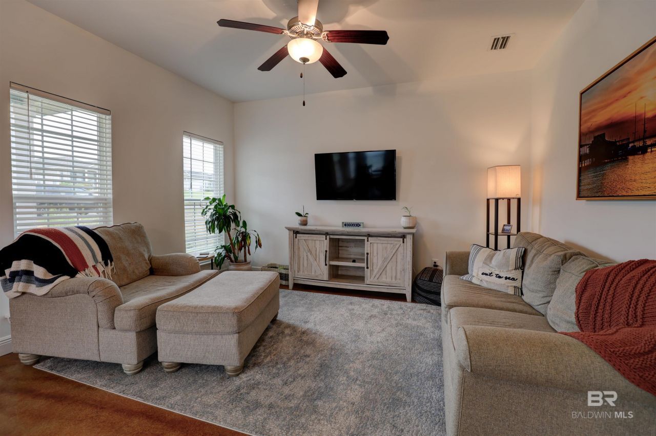 This beautiful condo is a must see! It's a 3 bedroom 2 bath one story, duplex in the Spanish Fort area with many upgrades including: stained concrete floors, granite countertops, and stainless steel appliances. The primary bathroom has double vanities, tub/shower combo, and a walk-in closet that offers privacy and convenience to the homeowner. Ceiling fans and blinds are included and installed in all bedrooms. The home has an attached single car garage convenient for parking and storage. The yard boasts a large open area with a covered front and back porch. A big bonus with this property is Lawn care, Termite bond, and Insurance on the building is included in the monthly dues. The insurance also covers the building and roof. This property is located in a growing area with great shopping, and excellent access to I-10, Mobile, and all of Baldwin County. Overall, this duplex has a lot of great features that makes it an attractive option for someone looking for a comfortable and convenient home in Spanish Fort. *Seller will entertain a long term lease at $1,750 per month as well.* Buyer to verify all information during due diligence.