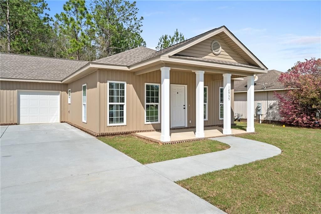 Looking to invest in a great property? This one is sold with a Lease is in place! Property is professionally managed by Shamrock Properties. 3 bedroom 2 bath ONE STORY, duplex in the Spanish Fort area. Upgrades such as stained concrete floors, granite countertops, and stainless steel appliances are just some of the quality construction that is evident in this home. The primary bathroom has double vanities, tub/shower combo, and a walk-in closet that offers privacy and convenience to the homeowner. Ceiling fans and blinds are included and installed in all bedrooms. The home has an attached single car garage convenient for parking and storage. The yard boasts a large open area with a covered front and back porch. A HUGE BENEFIT TO THESE IS THAT Lawn care, Termite bond, and Insurance on the building is included in the very low $228 monthly dues. Even better those same dues cover insurance on the building and roof. This property is located in a growing area with great shopping, and excellent access to I-10, Mobile, and all of Baldwin County. Overall, this duplex has a lot of great features that makes it an attractive option for someone looking for a comfortable and convenient home in Spanish Fort without the burden of having to keep up the lawn or pay expensive homeowners insurance for the building. Buyer to verify all information during due diligence.