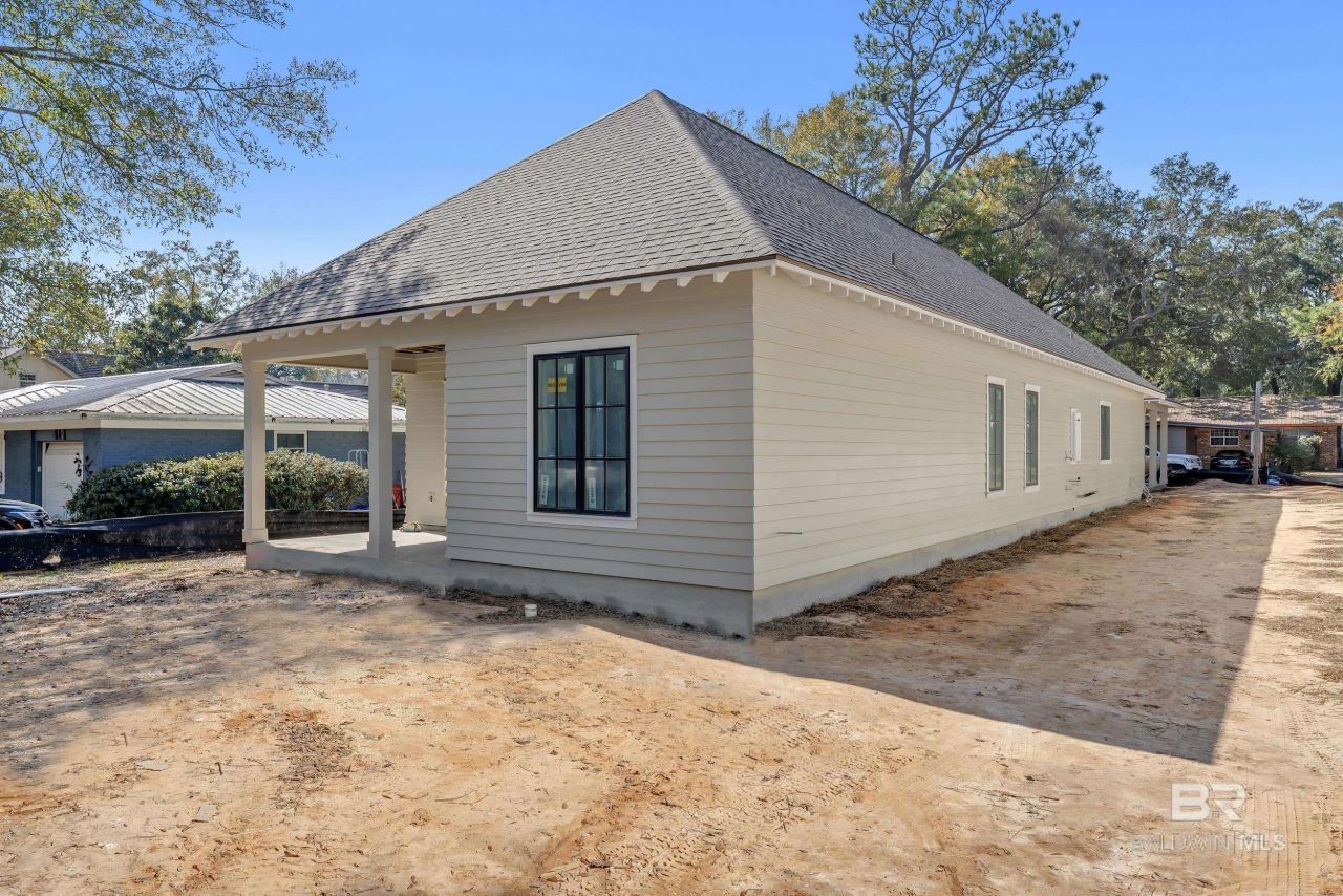 Dreaming of life in Downtown Fairhope? This exceptional new construction by Point Clear Building Company is currently underway with an estimated completion of March 2026. Gold Fortified and masterfully crafted, this 3-bedroom, 3.5-bath home features a functional floor plan that flows seamlessly and leaves no space unused. Every detail has been intentionally designed to blend luxury, comfort, and effortless everyday living. The beautiful tan exterior paired with classic green shutters creates timeless Southern charm and striking curb appeal. Inside, you'll find wood flooring throughout, tasteful designer tile, and outstanding trim and cabinetry work that reflect true craftsmanship. Tongue-and-groove ceilings add warmth and character, while the luxury Marvin casement windows?rarely seen and highly sought after?fill the home with natural light and architectural elegance. The kitchen is a true showpiece, complete with premium Viking appliances that elevate both style and performance. An inviting outdoor fireplace creates the perfect setting for relaxing evenings at home. Located just a short walk or golf cart ride to Downtown Fairhope's boutiques, dining, and entertainment, this home offers not just exceptional design?but the lifestyle everyone loves. Timeless. Refined. Simply beautiful. Buyer to verify all information during due diligence.