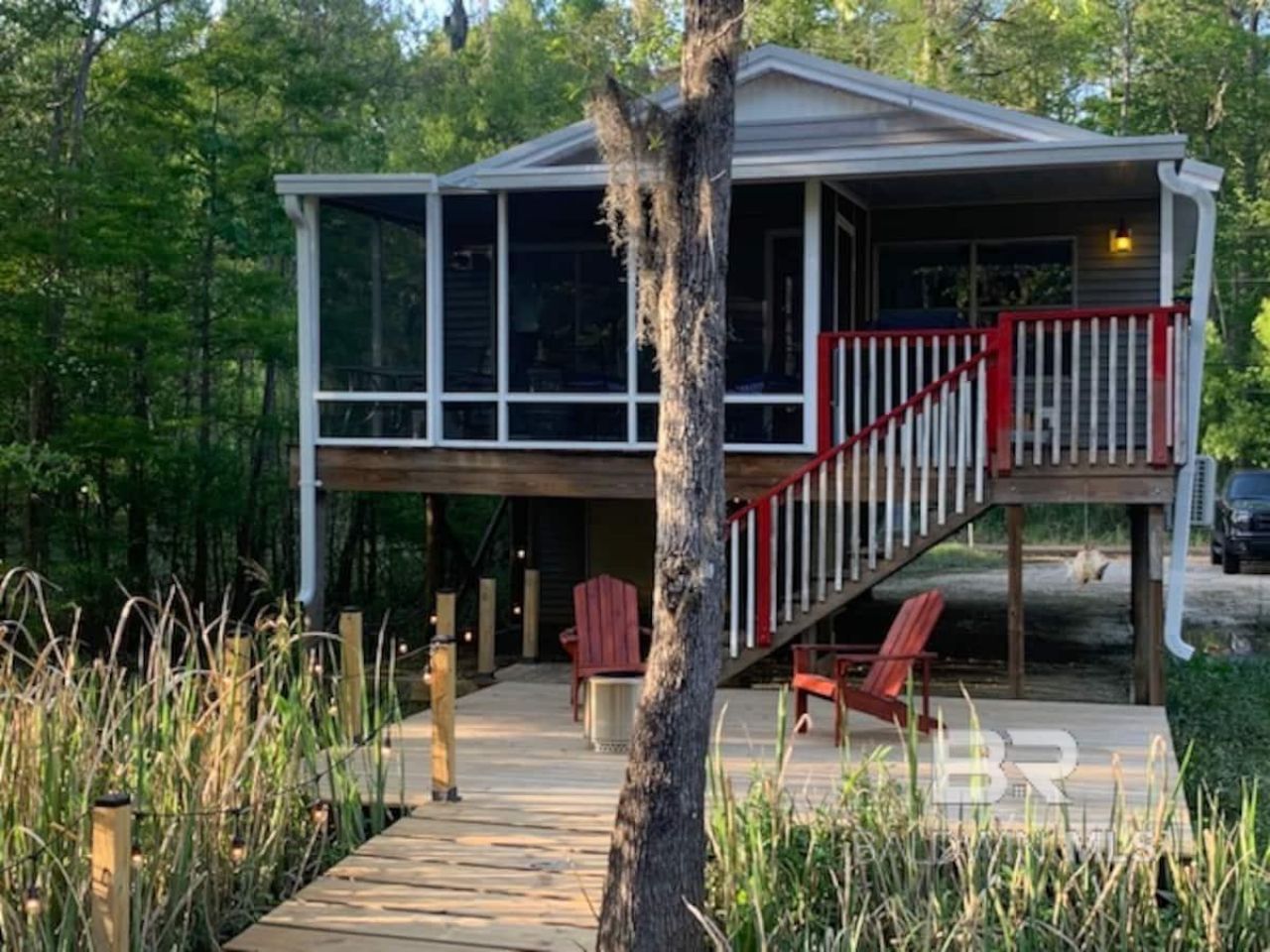 This newly renovated 2 bdrm 1 bath cottage is on Tensaw Island. The island is a private gated community. There is plenty of room to spread out and relax on the screened in porch or large platform deck. This is the perfect place if you love to kayak, fish or just want to spend the day on the Tensaw river or hangout on Gravine Island. With just being an hour drive from Gulf Shores/Orange Beach there are endless possibilities for recreation, food, and entertainment. The home is currently used as an Air B and B but can easily be your primary residence or keep it as a rental. If you want to continue renting, here are some of the perks for the rental. Each Bedroom has a queen bed. One bedroom has an additional bunk bed to allow sleeping for up to 6 guests. The kitchen has all the amenities of home including a coffeemaker. There is a table that sits 4 comfortably, and additional seating on the screened in porch. The main living area is spacious. The bathroom has a large vanity and a walk in shower. The screened in porch overlooks the large ground level deck and dock. The dock is perfect to tie up your boat, and there is a private boat launch for residents and guests on the island. Rental income available upon request. Buyer to verify all information during due diligence.