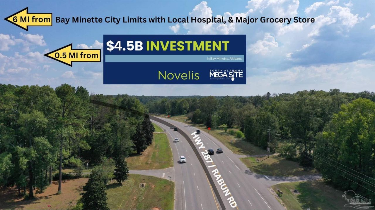 Bay Minette, AL-1 Acre Less than a Mile from I-65, Novelis & Mega Site, Fast Growth Area, High Traffic- This commercial lot offers excellent visibility & access for developers, investors & national brands seeking high-traffic commercial property near I-65. With 10,637 AADT on Rabun Rd/Hwy 287 (up 6.8% in one year) & 21,595 daily vehicles on I-65 (up 3.4%), this location provides strong visibility & consistent exposure for retail, hotel, restaurant, etc. Surrounding Developments: *25 mins from Baldwin Prep Academy. *New 116-Site RV Park near the Mega Site to serve industrial workers, travelers & visitors. *Old Towne Commons PUD (413 ± Acres): Approved mixed-use project with Phase 1 (77 single-family lots) & Phase 2 (115 lots) already platted; full plan includes 764 single-family lots, 392 multi-family units & 47 ± acres of commercial space. *Hilton-Branded Hotel & 2 Restaurants: expanding lodging & dining options. *'31 Commons' Retail & Office Center: Planned along U.S. 31 South to add new retail & commercial opportunities. *Big Mike's Steakhouse & Cobblestone Hotel: planned for downtown, driving Bay Minette's revitalization. *Novelis $5 Billion Aluminum Plant: Fueling regional industrial & infrastructure growth. Zoning Flexibility & Investment Advantages: Unzoned property allows for restaurant development sites, gas stations, quick-service restaurants (QSRs), convenience stores, multi-family projects, RV parks, or warehouse space. Located in an Opportunity Zone, this property offers significant tax incentives for developers and investors. Additional Features include a single-family home, shop & detached garage. Proximity to Key Areas: 6 miles to Downtown Bay Minette; 34 miles to Mobile, AL; 58 miles to the Gulf of Mexico. Financing Assistance Available: Eligible for SBA commercial real estate financing for qualified buyers and developers. This strategic location is poised for commercial success & ready for development.
