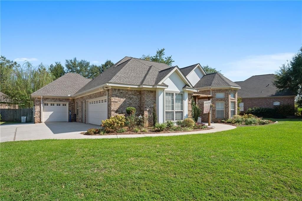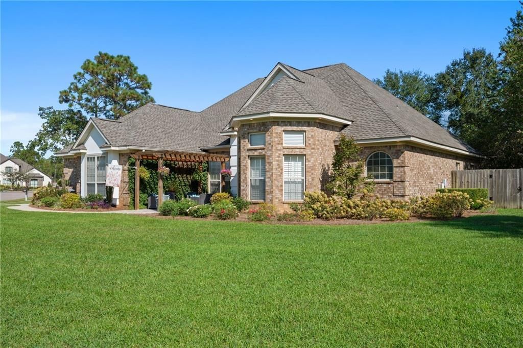 Welcome to this stunning 5-bedroom, 4.5-bathroom home in the desirable Riverwood Estates subdivision. Recently updated this spacious 3,305 sqft. property offers both luxury and functionality. Inside, you'll find hardwood floors in the living room, dining room, and foyer, along with new tile in the kitchen area. The main level features four bedrooms, including an oversized master suite with a clawfoot tub, subway tile shower, and granite countertops. Two additional bedrooms each have beautifully renovated en-suite baths with quartz countertops, while the fourth doubles as a bedroom or office with its own half-bath. Upstairs, a 13x21 bonus room includes a walk-in shower and sink, perfect for guests or a flex space. The home's thoughtful design extends outdoors with incredible amenities for entertaining and relaxation. A new heated 12x16 gunite saltwater pool is complemented by a 16x30 covered living space with a tongue-and-groove ceiling, recessed lighting, natural gas fire table, dining and seating areas, privacy walls, and a TV viewing space. The backyard also features a retaining wall, extensive landscaping, Edison lighting, and full irrigation. In the front, a pergola and paved sitting area with lush landscaping create a warm welcome. Additional highlights include:12x12 golf cart garage22kW standby generatorFortified roof replaced in 2023Neighborhood amenities: private boat launch and pier just steps away, community pool, tennis courts, and basketball goalsConvenient location with easy access to I-10 via Rangeline Road (just 3 miles away)This property truly combines elegance, comfort, and convenience - offering everything you need for everyday living and exceptional entertaining.