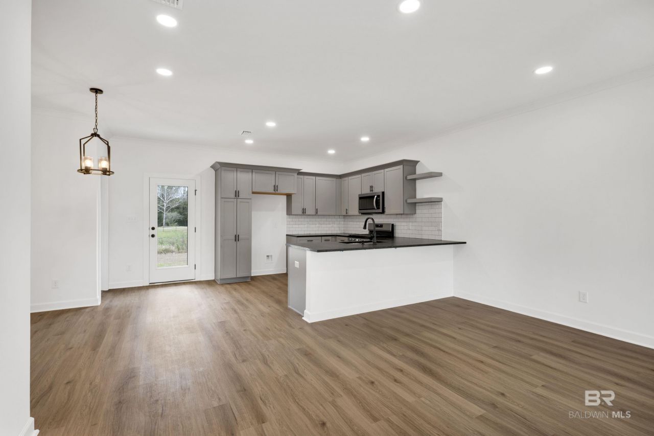 New construction, USDA ELIGIBLE! Step through the front door and feel instantly at home in this beautiful contemporary styled home nestled in the desirable Woodside Subdivision in Theodore, conveniently located near major employers and local schools.As you enter, you're welcomed into a bright, open-concept living, dining, and kitchen space, designed for both everyday comfort and effortless entertaining. Warm LVP flooring flows throughout, complemented by crisp Snowbound walls, recessed lighting, and trendy pendant lighting that adds a modern touch to the dining area. The kitchen is a true showstopper, featuring black pearl honed granite countertops, stainless steel appliances, a sleek black Delta faucet, and an under mount sink that ties the look together beautifully.To the left of the main living space, you are greeted by three freshly carpeted bedrooms and two full bathrooms. The primary suite is a relaxing retreat, offering a walk-in closet and a stylish en-suite bathroom with a stand-up shower.Built with comfort and savings in mind, this home is Gold Fortified and energy-efficient, complete with a tankless water heater to keep utility costs low. Situated on a large corner lot, there's plenty of space to enjoy outdoor living, including on your covered back porch.Modern, efficient, and move-in ready, this Woodside gem is ready to welcome you home with $5000 in buyer incentives! Buyer to verify all information during due diligence.