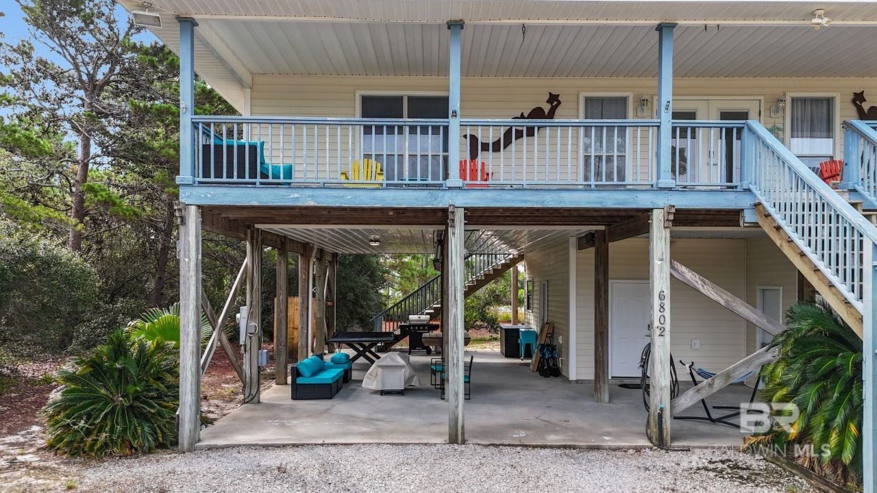 Charming 5-bedroom, 3-bath coastal home located just a short walk, drive or cart ride to your deeded Gulf beach access. This newly renovated property offers spacious interiors, modern updates, and loads of outdoor spaces for enterainment, recreation and relaxation! Full size garage and seperate, private suite at ground level. Conveniently situated near Kiva Dunes Golf Resort, The Beach Club Resort, Fort Morgan Historic Site and Gulf State Park. Buyer to verify all information during due diligence.
