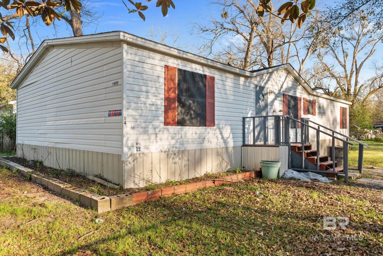 Discover 7695 Bermuda Dr, Semmes, AL, a well-maintained 3-bedroom, 2-bathroom mobile home offering comfort, convenience, and recent updates throughout. This is an opportunity for buyers seeking value and move-in readiness. This home features new flooring, a recently installed roof, and fresh interior paint, creating a clean and welcoming space from the moment you enter. Enjoy a spacious living room filled with natural light, complete with a cozy fireplace perfect for relaxing or entertaining. The kitchen includes an electric oven, dishwasher, and refrigerator, providing functionality for everyday use. The primary bathroom boasts a bathtub complemented by a high-set frosted transom window, allowing natural sunlight in while ensuring privacy. Each of the three bedrooms offers a walk-in closet, giving you plenty of storage space. Additional features include a dedicated laundry room and a separate pantry room for added convenience. The property offers easy access to nearby grocery stores, dining, and essential services, helping to simplify daily errands. The fully fenced yard provides a secure outdoor space for various uses. Schedule your showing today and come see all this home has to offer. Buyer or Buyers Agent to verify all information deemed important during due diligence. Buyer to verify all information during due diligence.