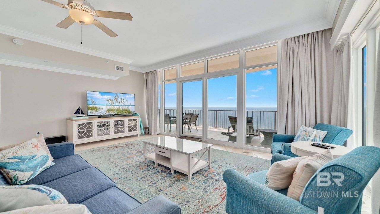 Gulf-front condominium featuring 4 bedrooms and 3 bathrooms located in Gulf Shores. This property boasts granite and tile finishes throughout, along with a unique handicap-accessible shower. This spacious open-concept living area is ideal for entertaining, featuring floor-to-ceiling windows with stunning Gulf views. The chef's kitchen boasts modern stainless-steel appliances, granite countertops, and plenty of cabinet space. The primary suite includes a private balcony for enjoying Gulf breezes and panoramic vistas, while additional bedrooms offer comfort and privacy.This condo also has a unique handicap-accessible shower for convenience. The building offers amenities like a resort-style pool, a fitness center, and direct beach access, perfect for sunbathing or leisurely strolls. Conveniently located near dining, shopping, and entertainment, this Gulf-front condo is perfect for a permanent residence or vacation getaway. Buyer to verify all information during due diligence.