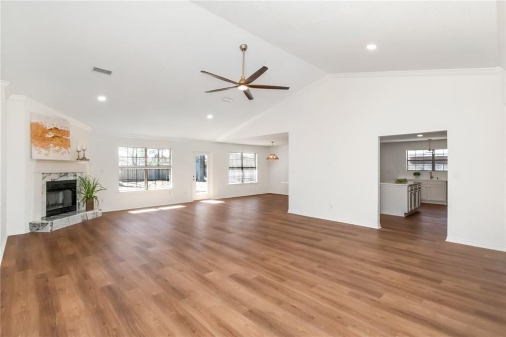 VRM: Seller will entertain offers between 369,000 and 389,000 USDA ELIGIBLE! New sod was just installed in the backyard- not pictured* Beautifully updated 4-bedroom home with a cohesive, designer-inspired aesthetic in Saddlebrook, one of West Mobile's premier neighborhoods. This move-in-ready home showcases high-end finishes and on-trend design throughout, including quartz countertops, brass hardware, LVP flooring, crown moulding, recessed lighting, and remote-controlled modern ceiling fans. The inviting open floor plan features a foyer, formal dining room, and a spacious living room with a fireplace and vaulted ceiling. The stunning kitchen offers an abundance of cabinetry, kitchen island, breakfast bar, built-in desk, new stainless appliances, an oversized walk-in pantry with extensive shelving, plus a breakfast room. The private primary suite is a true retreat: the bedroom is large enough for a King bed and a sitting area while the bathroom features double vanities, a whirlpool tub, custom-tiled walk-in shower with niche, private water closet, and two walk-in closets. Additional highlights include a laundry room with cabinetry, double garage, patio, fenced yard, and storage shed. Don't miss this rare opportunity to own a thoughtfully updated home in one of West Mobile's most highly rated school zones-schedule your showing today!